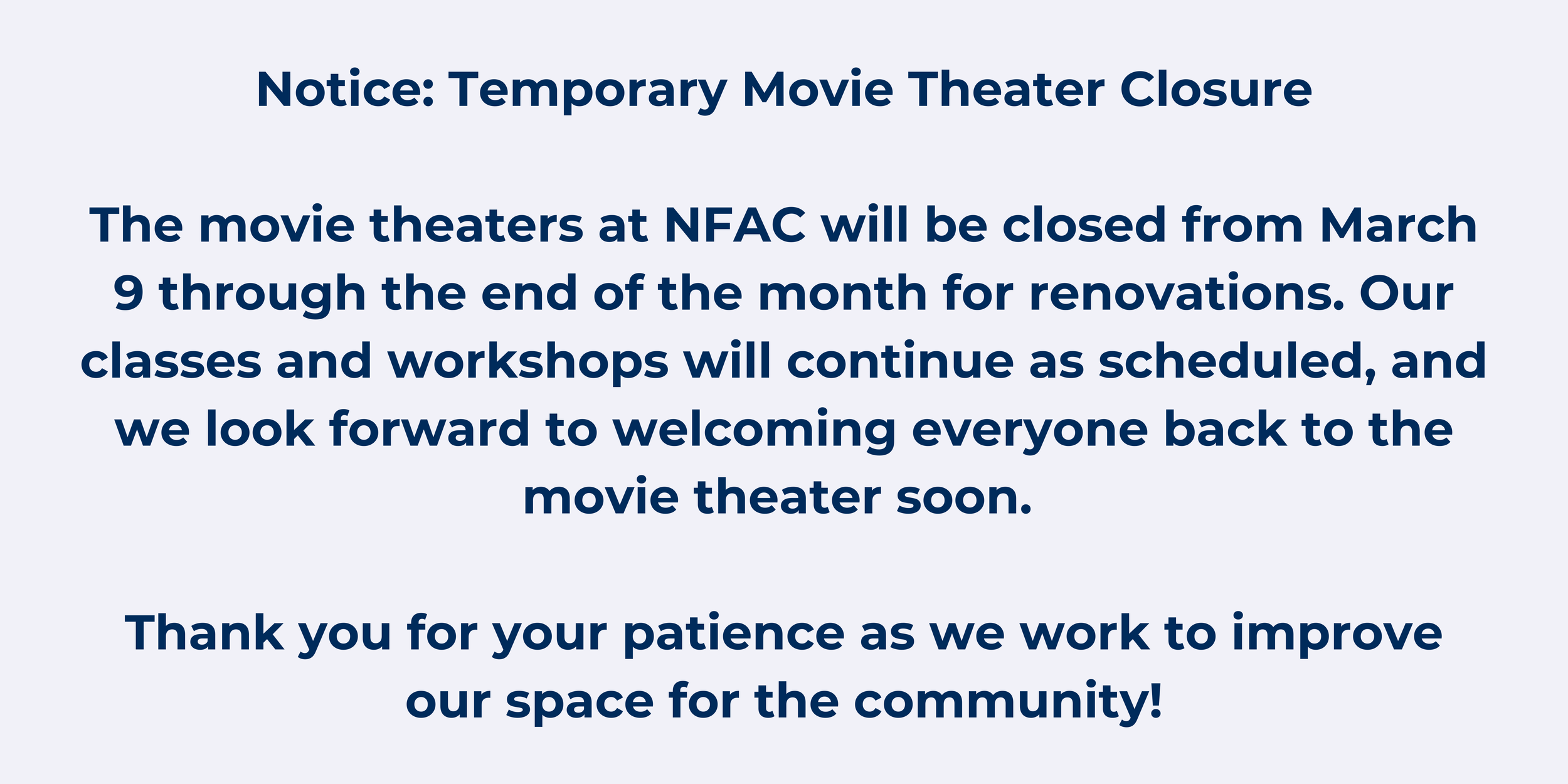 Our mission is to provide a welcoming cultural arts center where people of the North Fork community can come together to be entertained, educated, and inspired by world cinema, live performances, fine art exhibitions, lecture series, and hands-on arts training. NFAC is committed to improving the quality of life in our community by promoting an appreciation for cultural arts, creativity, and critical thinking.
